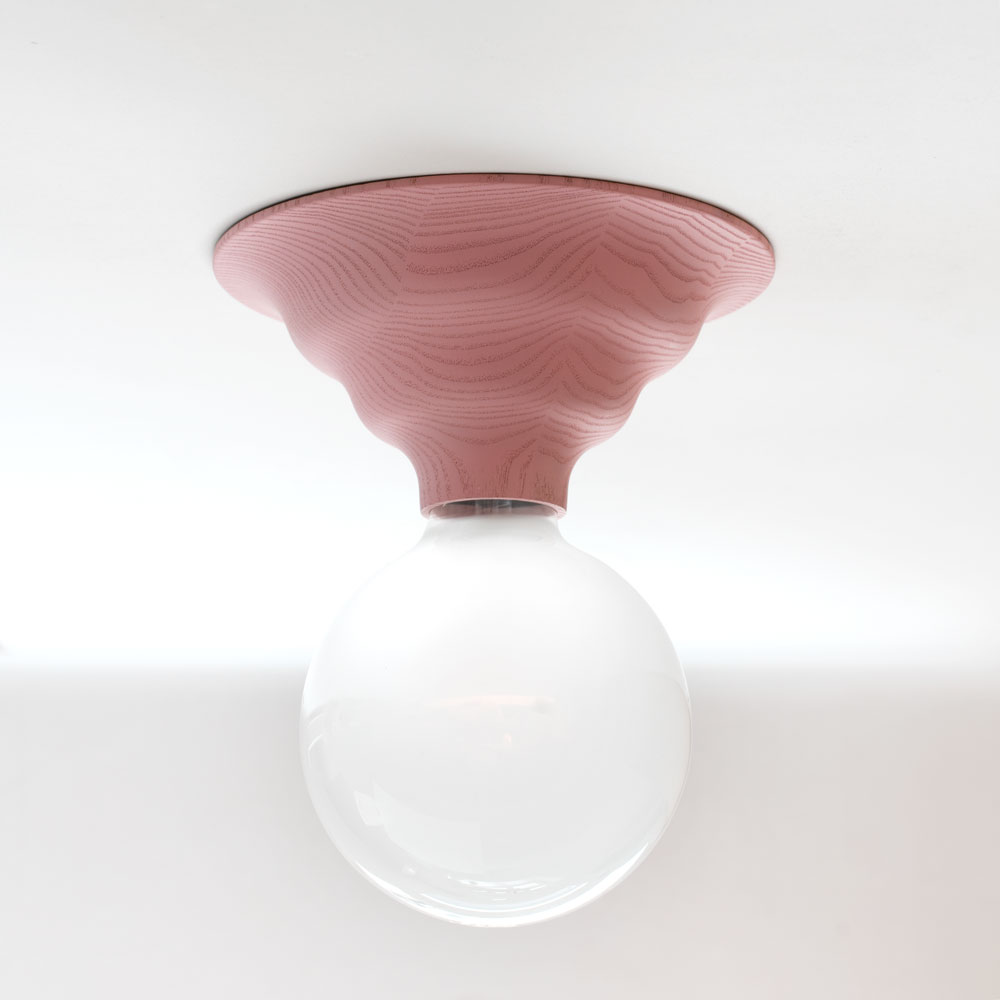 SKALA ceiling and wall lamp is available in three different shapes: Curve, Edge, Wave. Surface options include: oiled oak, oiled ash, white, yellow and rose stained.
